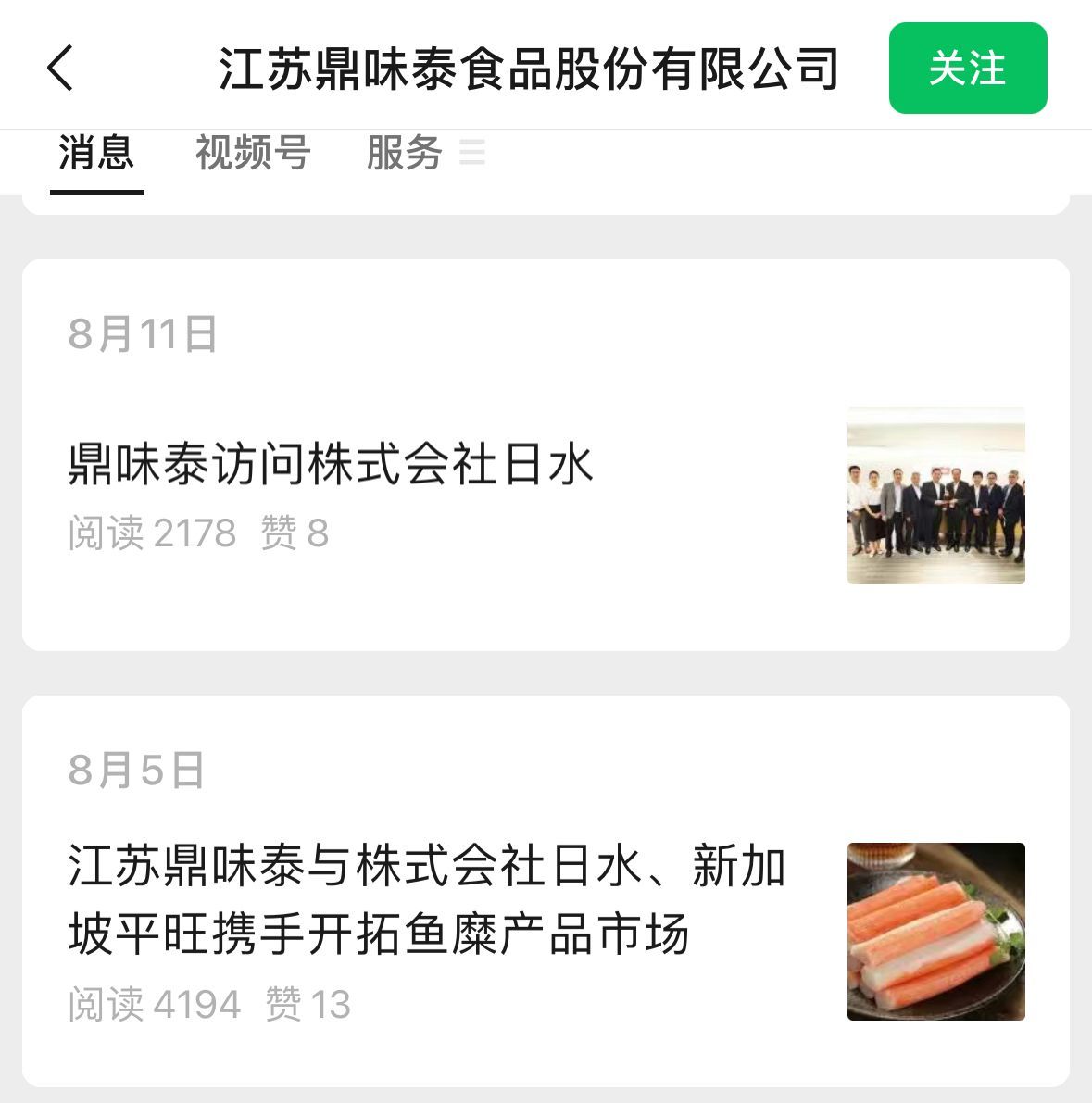 读特新闻记者查询发现,江苏鼎味泰的官方微信公众号曾于8月5日发布与上述两家企业携手开拓鱼糜产品市场的推文。据该文章介绍,株式会社日水是日本最大的海产品公司之一,从事海产品的捕捞和加工,新加坡平旺则拥有50年的鱼丸制造历史。文中提到,鼎味泰设定2030年与日水共同产销1万吨,合计5万吨产品,为实现这一目标,公司将重点开拓CVS(便利店)、超市及餐饮等销售渠道。