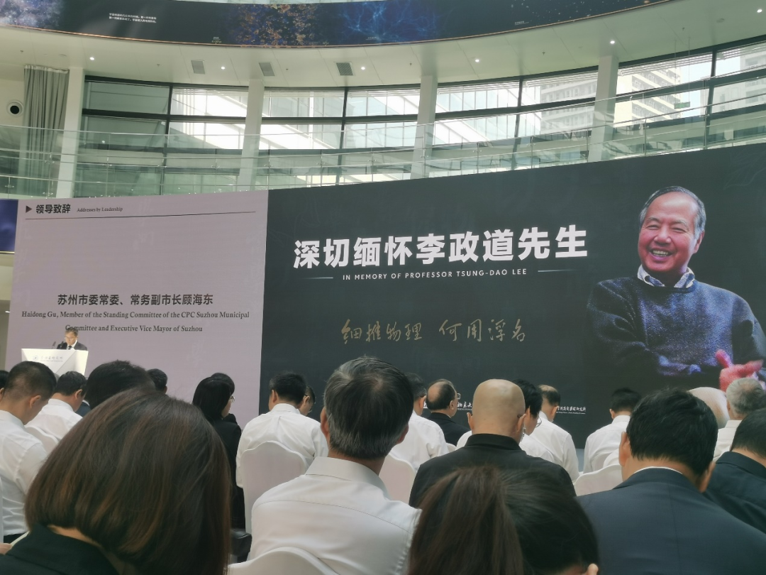 悼念追思会上,作为家乡代表,苏州市委常委、副市长顾海东在致辞中表示,李政道先生是世界杰出科学家、诺贝尔物理学奖获得者,更是开创华人获得诺贝尔奖历史的物理学大师之一,是华人之光,更是苏州骄傲。李政道先生出生在上海、祖籍苏州,他的曾祖父李子义先生和其他先贤一起创建了苏州天赐庄博习书院,也就是后来的东吴大学,今天的苏州大学。李政道先生的家学渊源,充分印证了耕读传家、诗礼传家、崇文重教的苏州从古代“状元之乡”到当代“院士之城”的文脉传承。
