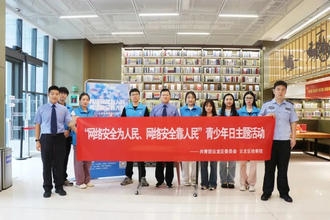 团区委组织青年志愿者和检察官来到云龙区图书馆发放网络安全知识宣传手册,向青少年及其家长宣传网络安全知识;同时深入社区,重点针对辖区老年人在防范个人信息泄露、预防网络诈骗等方面进行广泛宣传。