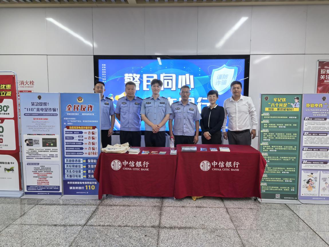 近日,中信银行徐州分行与徐州市反诈中心联合举办了以“警民同心,反诈同行”为主题的反诈骗宣传活动。活动以直面群众,倾听百姓声音,解决切实问题为目的,普及金融知识,并借助“口口相传”力量扩大受众面,将反诈知识传播至千家万户。