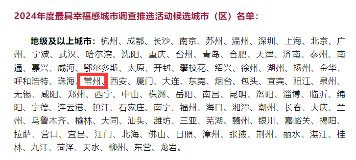 近日,新华社《瞭望东方周刊》发布了2024年度最具幸福感城市调查推选活动候选城市(区)名单。
