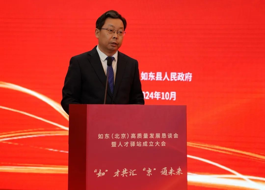 陈慧宇在会上致辞。他指出,北京是全国政治、经济、文化、国际交往和科技创新中心,一直也是如东项目招引的重要区域、如东籍优秀人才的主要集聚地之一。近年来,我们深度对接北京,吸引了中石油、中化集团、三峡、华润、国电投、燕京啤酒等数十家央企国企在如投资,为如东产业发展注入了强劲动能。