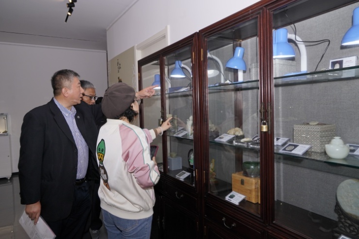 开幕式后,嘉宾进行了研讨交流,并观赏展品。至善精舍藏玉《莲蓬》《蛙声清风》《诗文香筒》《天禄》,利群藏玉《福寿双全》《白玉笑佛》,周素琴藏玉《仿明三丝独立绞丝镯》《山水情》,黄海晴藏玉《原籽手把件》,陈洪锦藏石《孔雀观海》、周德麟藏石《鹦鹉》、戴康乐藏石《斗牛士》《莫愁烟柳》、王道林藏石《龙腾盛世》、夏存新藏石《大话西游》、林读岭藏石《米芾拜石》、王如洲藏石《红杉树》、贾平藏石《美猴王》、倪传明藏石《雨花魂》、杨文宁藏石《楚风图腾》等,题材广泛,件件可视为绝佳珍品。