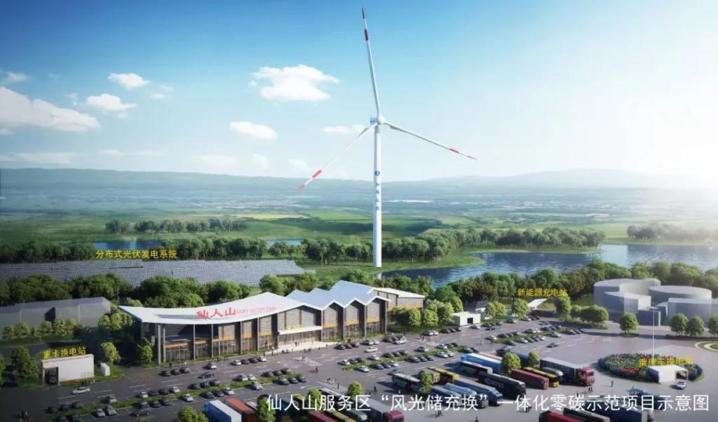项目计划在宁沪高速(G42)仙人山服务区北区新建一台5.6兆瓦大型风力发电机组,实现服务区电力的“自发自用、余电上网”。服务区还将建设容量为8530千伏安的电源,与已投产的分布式光伏、充电设施、乘用车换电站、重卡换电站、新型储能等发用电设施共同接入“风光储充换”一体化微电网架构,形成风能、太阳能、新型储能与用电负荷协同互补的智能微电网系统。