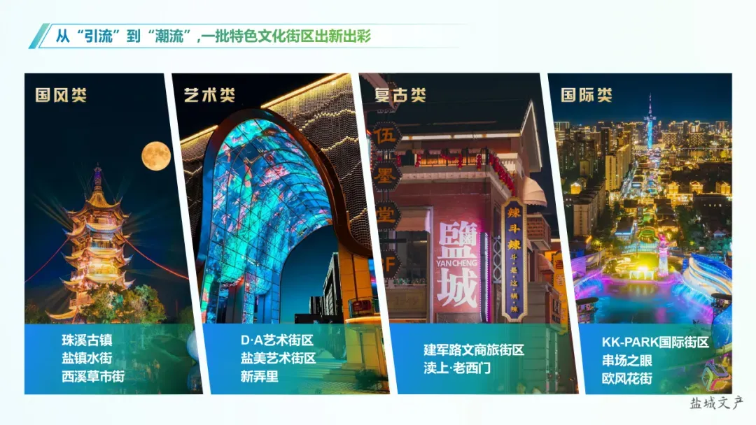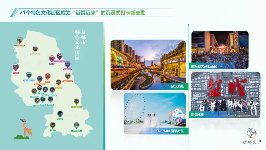 以国风、艺术、复古、国际等为特色,打造的欧风花街、KK-PARK等21个文化街区,成为“近悦远来”的沉浸式打卡新去处,“盐城街有你”话题在小红书、抖音持续引发关注,诚邀更多“首店、首秀、首展”入驻盐城文化街区,共同打开潮流新方式。