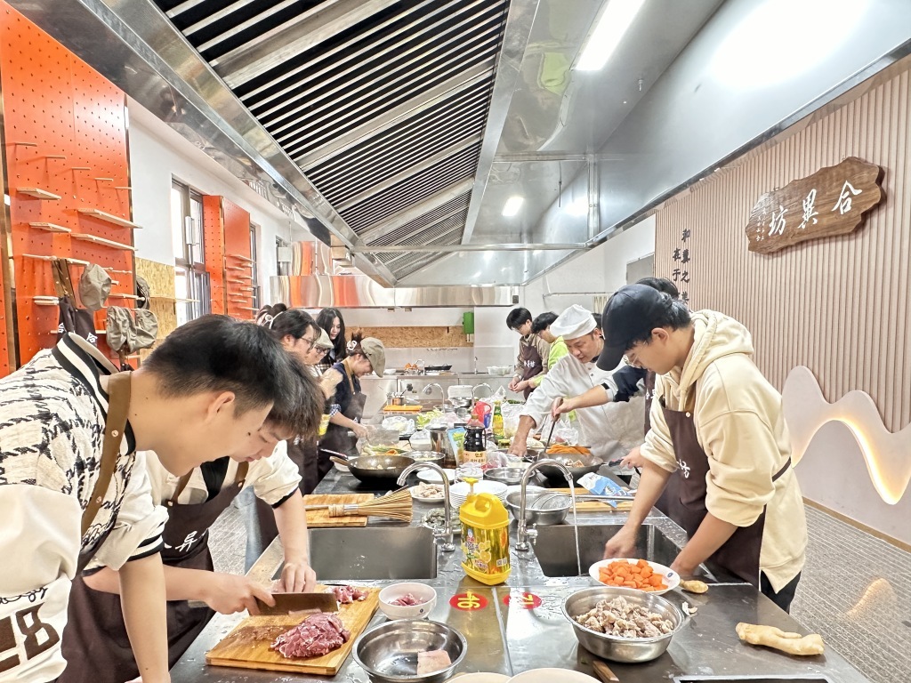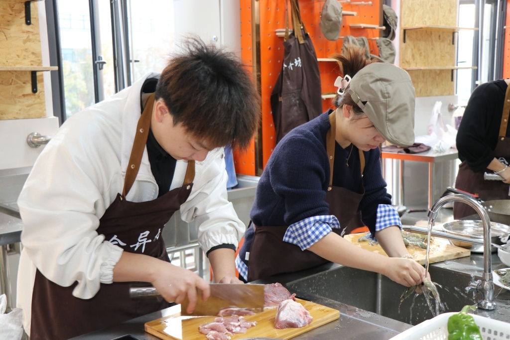 每周五下午,江苏科技大学东苑食堂二楼都会出现一道特别的风景——三五成群的学生围在灶台前,有的切菜,有的配菜,有的烧菜,不一会一道具有地域特色的菜肴端上了大圆桌。