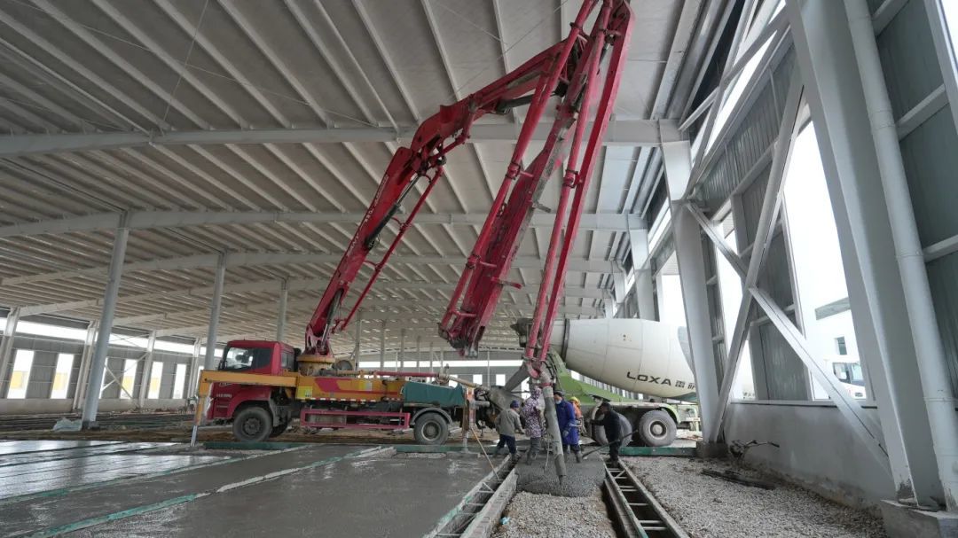 “下个月,我们这里将大变样!”位于岚山镇韩一工业园的徐州东欣纺织面料生产项目是睢宁县重大产业项目。12月9日,在该项目1号厂房内,混凝土浇筑机及工人正在浇筑地面。
