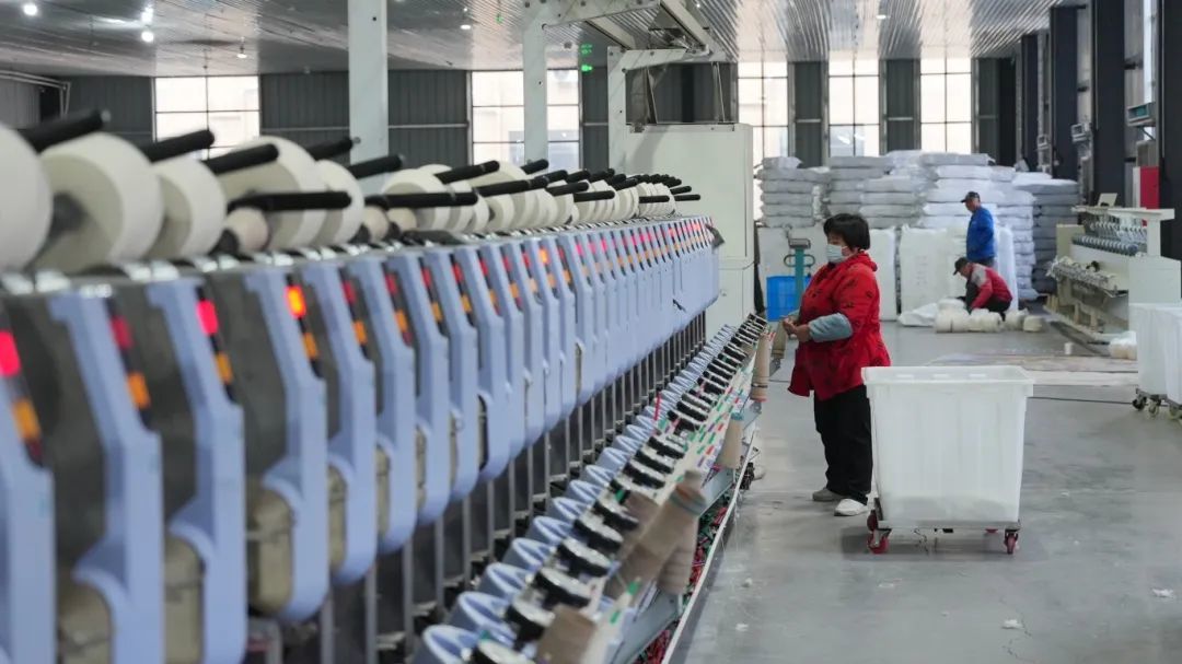 12月9日,正在建设的广和羊绒纱线及服饰生产项目现场,生产车间内,自动化生产设备运转不停;织造车间内,工人们正在安装设备……