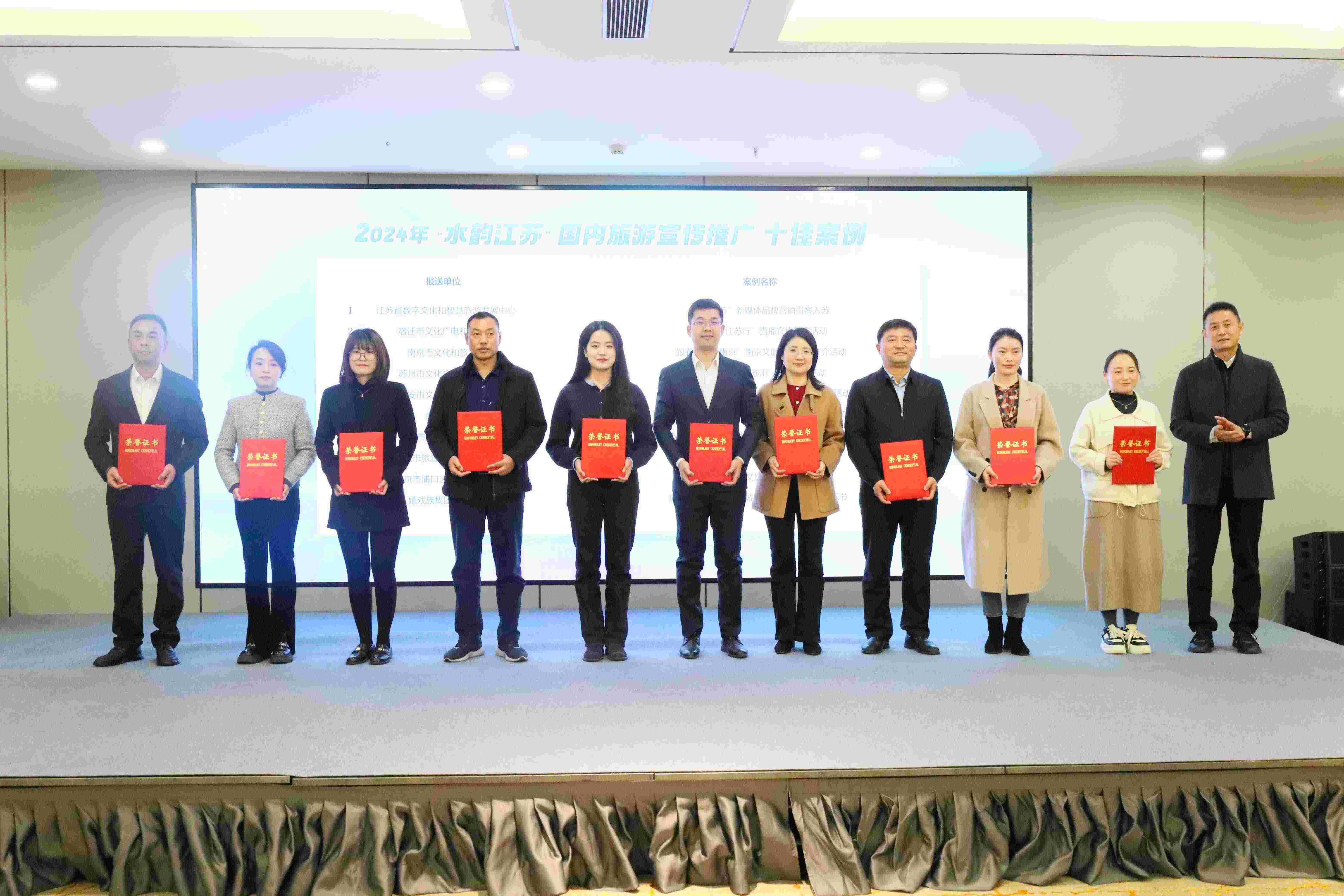 活动现场,主办方揭晓了此次获奖的十佳案例和优秀案例,并举行颁奖仪式。“水韵江苏”新媒体品牌营销引客入苏等10个案例入选2024 年“水韵江苏”国内旅游宣传推广十佳案例,“水韵天成·自在宿城”文旅推广季全媒体宣传营销活动等10个案例入选2024年“水韵江苏”国内旅游宣传推广优秀案例。