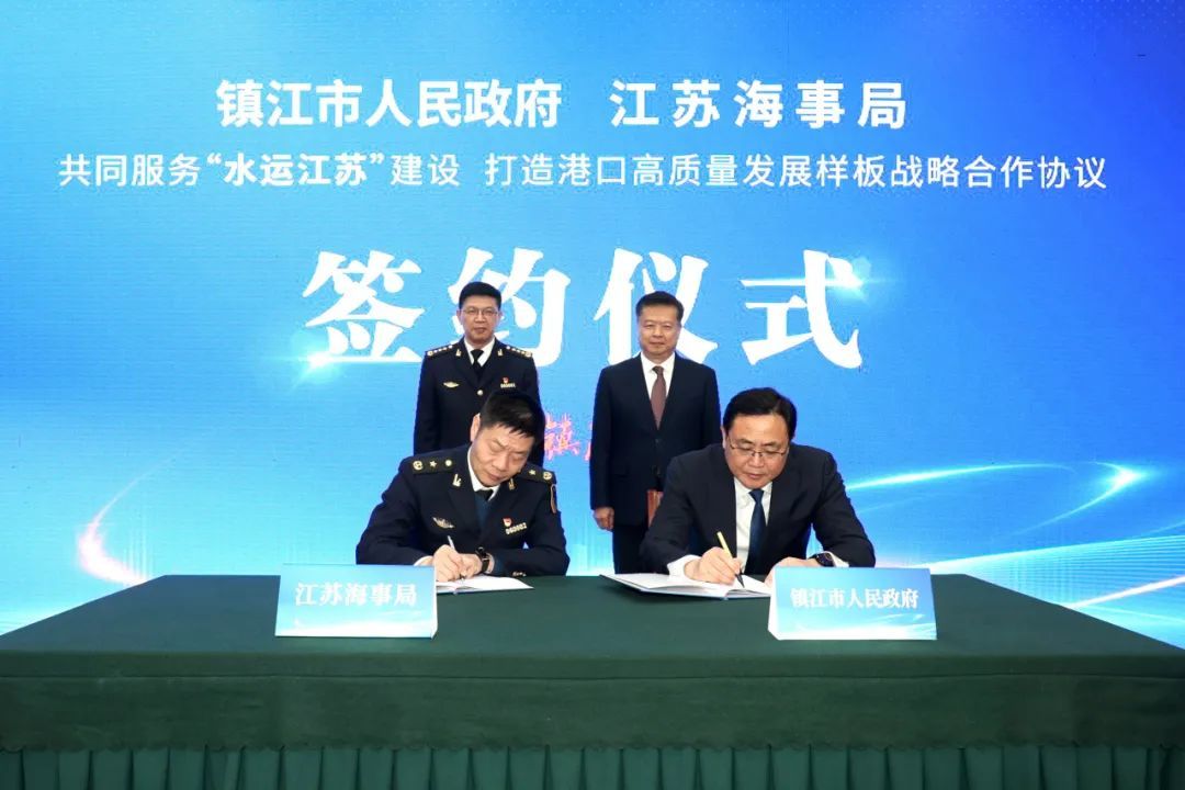 12月12日,镇江市人民政府与江苏海事局《共同服务“水运江苏”建设 打造港口高质量发展样板战略合作协议》签约仪式在镇江举行。镇江市委副书记、市长徐曙海,江苏海事局党组书记、局长缪昌文出席活动并致辞。