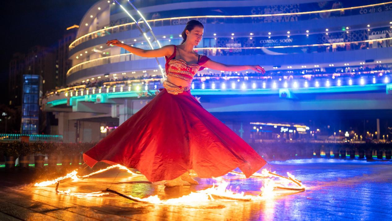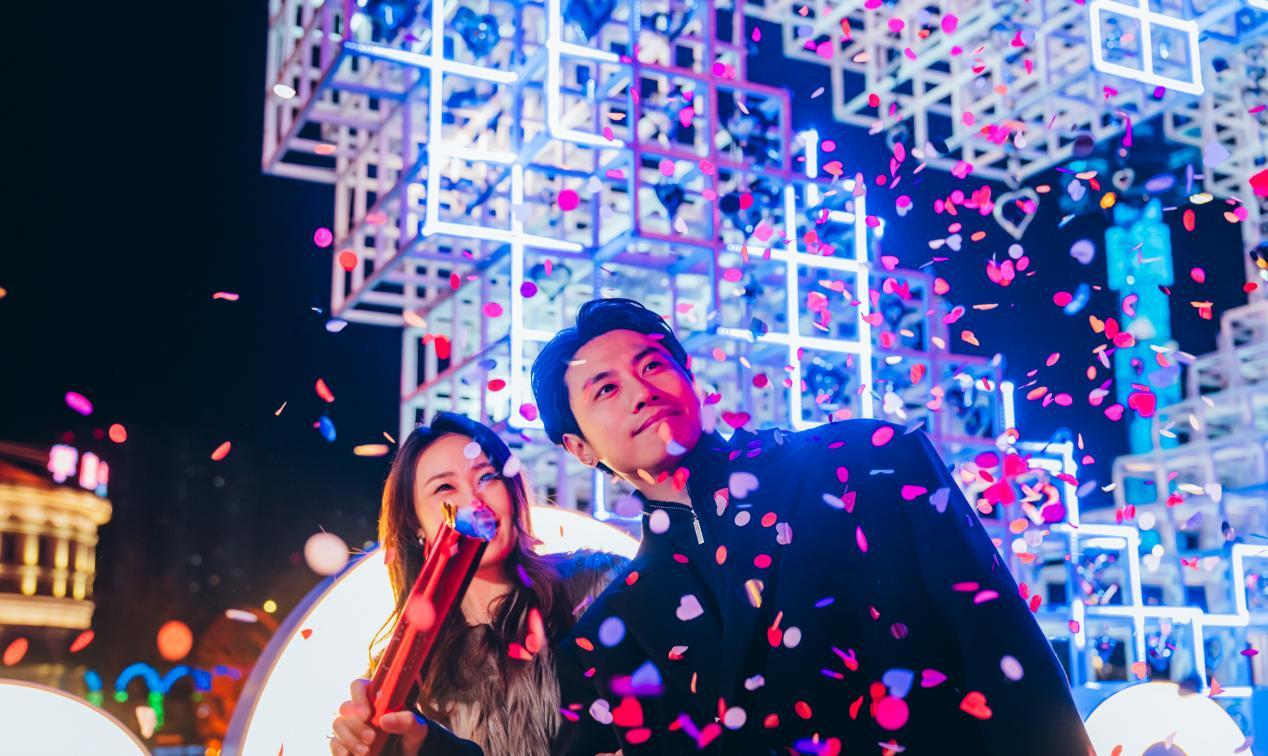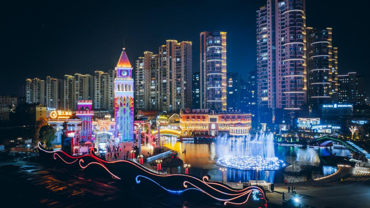 点亮仪式活动在光影创意舞蹈《创未来》中精彩开场,该舞蹈将音乐旋律与舞蹈节奏完美融合,为在场观众奉上了一场视听盛宴。紧接着,随着一首原创歌曲《活力in盐南》响起,相关领导嘉宾共同触摸启动球,正式宣告仪式启动。此时,欧风花街主广场上,一场精彩绝伦的楼宇秀同步上演,钟楼蝴蝶结、广场爱心美陈、广场喷泉、盐立方广电塔、聚龙湖周边标志建筑、圣马可广场、欧风花街街区7座焕然一新的主题桥、串场之眼等标志建筑的灯光逐一点亮,将夜晚装点得宛如梦幻之境。