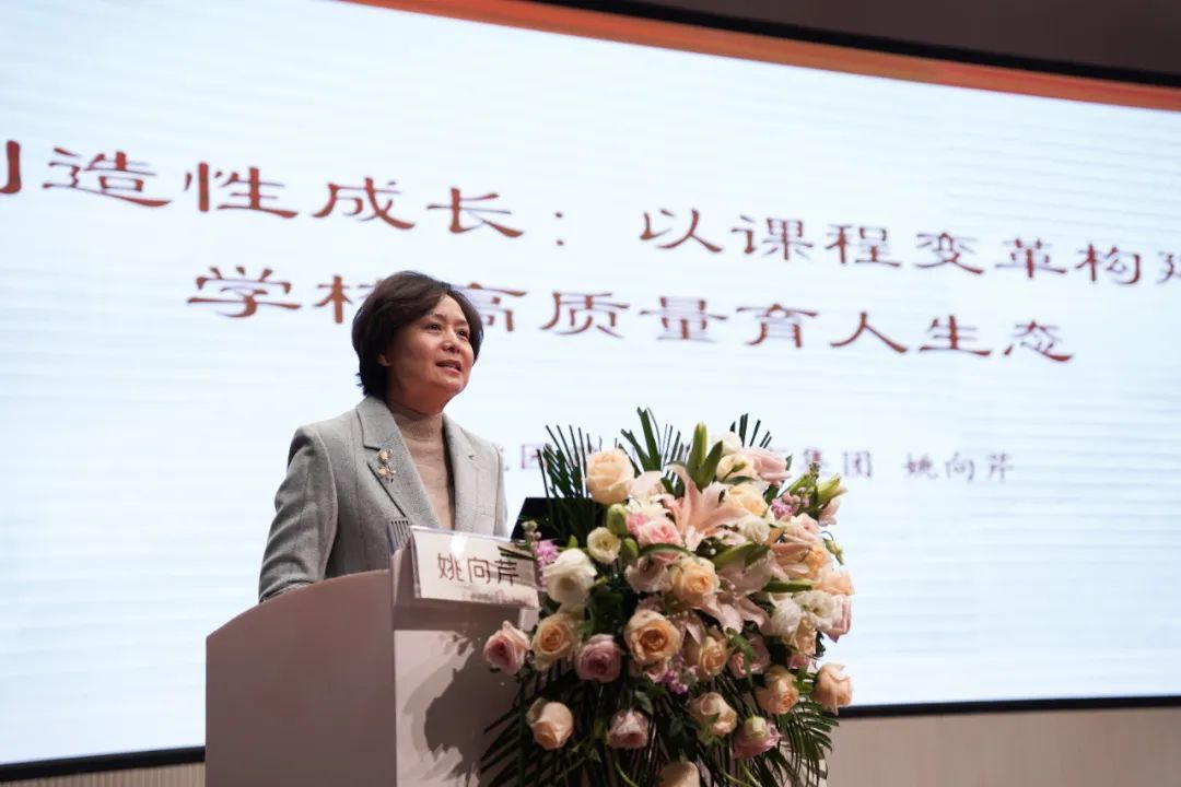 桃园路小学教育集团校长姚向芹以《创造性成长:以课程变革构建高质量育人生态的校本实践》为主题进行交流发言。