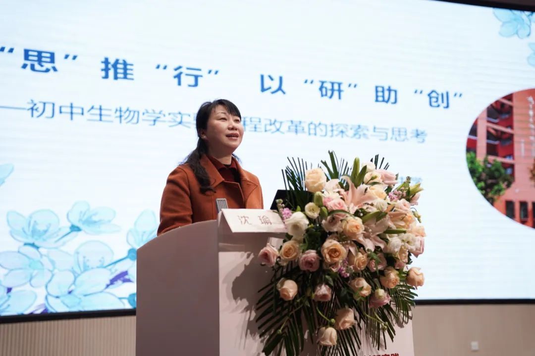 徐州市第三十一中学校长沈瑜以《以“思”推“行” 以“研”助“创”——初中生物学实验课程改革的探索与思考》为主题进行交流发言。