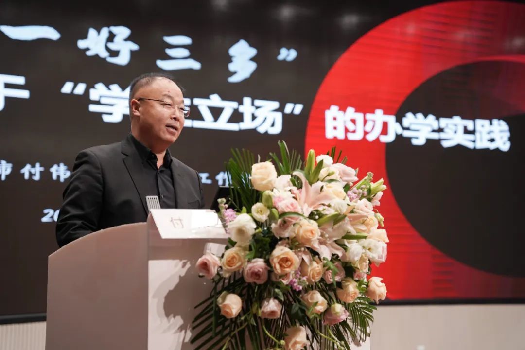 丰县宋楼高级中学校长付伟以《一好三多:基于“学生立场”的办学实践》为主题进行交流发言。