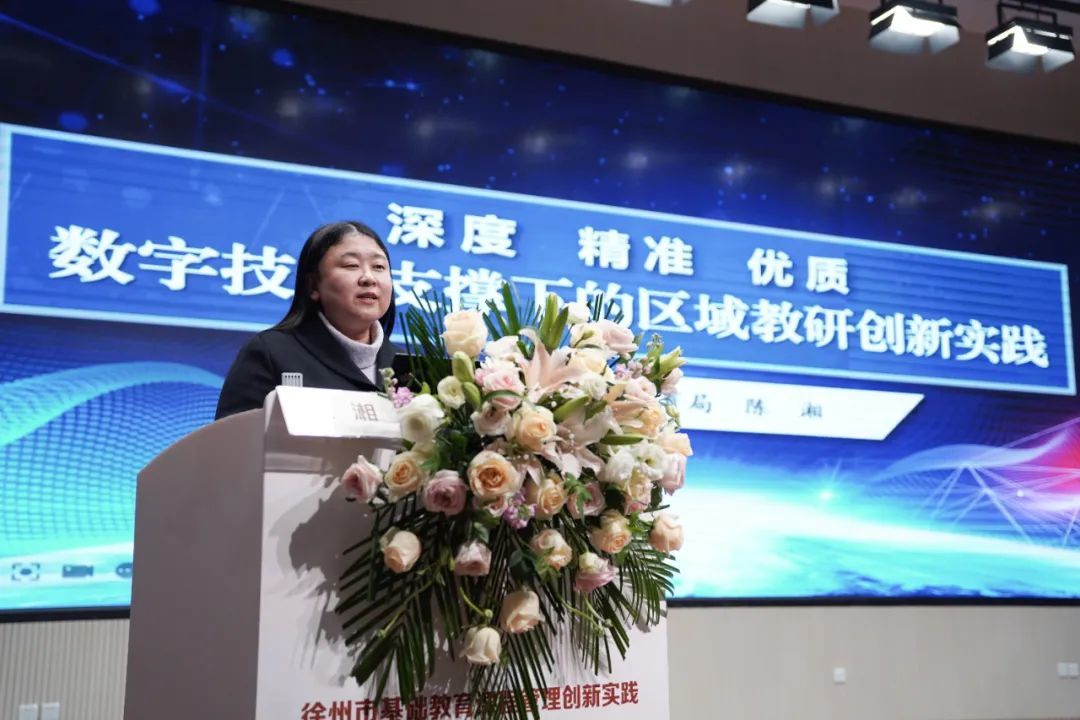 泉山区教育局副局长陈湘以《深度 精准 优质:数字技术支撑下的区域教研创新实践》为主题进行交流发言。