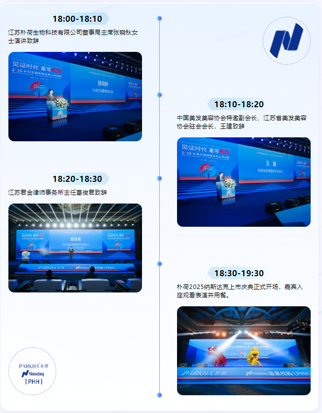 2025年1月13日晚,无锡君来湖滨饭店湖滨厅迎来了一场具有里程碑意义的盛会——朴荷生物纳斯达克上市庆典。此次上市标志着朴荷生物(股票代码:PHH)成功登陆美国纳斯达克,成为全国皮肤管理单品牌赴美上市“第一股”,在行业内激起千层浪,为皮肤管理领域的发展翻开崭新篇章。