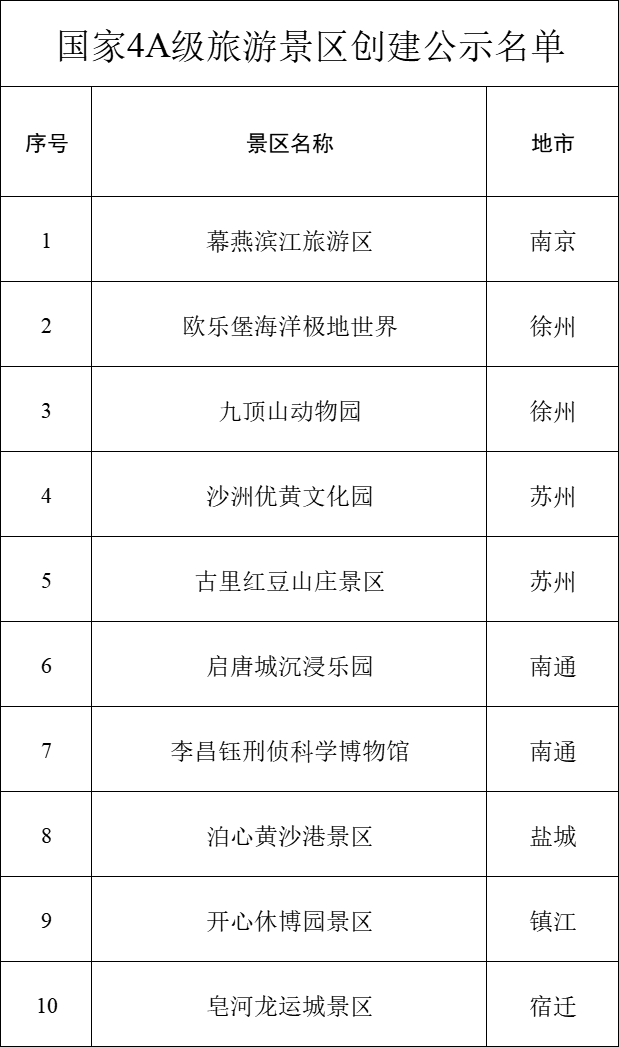 2月14日,江苏省文化和旅游厅官网发布《关于国家4A级旅游景区创建名单的公示》,共有7个城市的10家景区进入创建名单,其中南京幕燕滨江旅游区上榜。