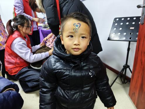 活动现场,彩绘老师用手中的彩绘颜料在孩子们的小脸上绘就各种精美的图案,可爱的卡通形象、寓意吉祥的图腾、象征幸福的花朵……孩子们围坐在老师身边,眼睛里闪烁着兴奋与期待的光芒。家长们也在一旁看得津津有味,不时拿出手机记录下这温馨美好的瞬间。随着活动的深入,越来越多的孩子加入到彩绘的行列中,整个活动室变成了一片色彩斑斓的欢乐海洋。