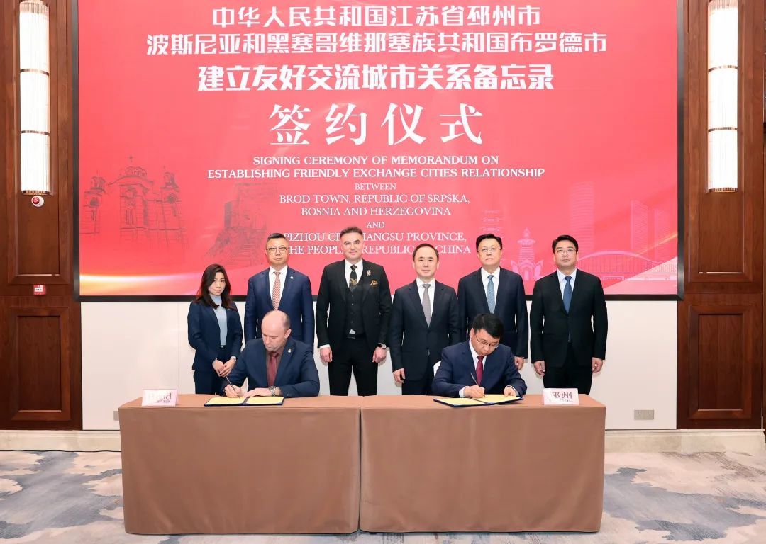 3月2日,徐州市委书记宋乐伟会见波斯尼亚和黑塞哥维那驻华大使西尼沙·贝尔扬一行,共同见证邳州市与布罗德市签署建立友好交流城市关系合作备忘录。