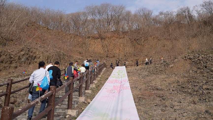 瓜埠山,距今935万年,因其独特的地质景观被誉为“乌龟山”。活动现场,文艺表演精彩纷呈,为登山活动拉开了序幕。上午10时,随着一声令下,参与者们沿着蜿蜒的登山步道奋力攀登,沿途欣赏着山间草木萌发的春日美景,感受着清新空气与微风拂面的惬意。
