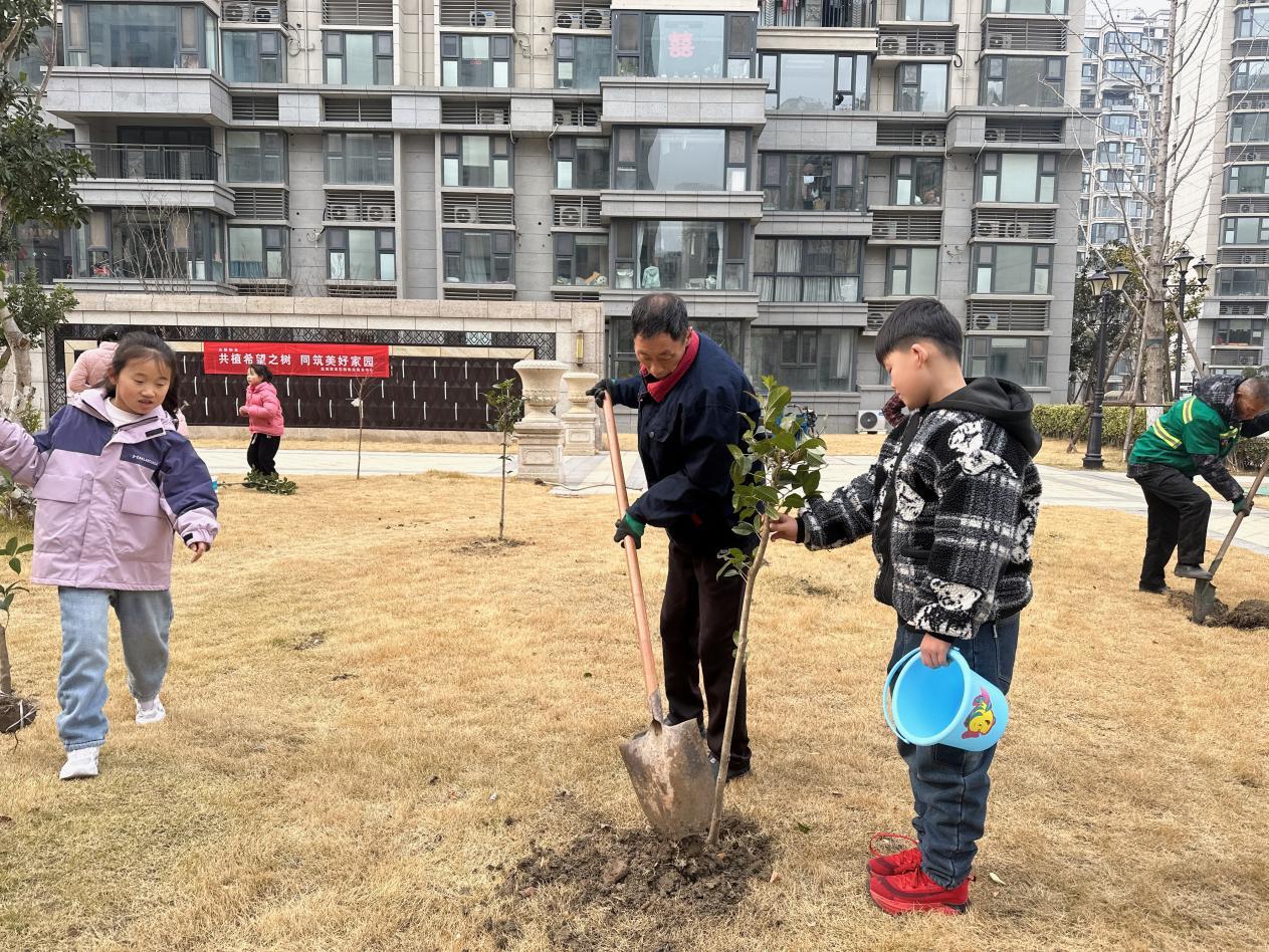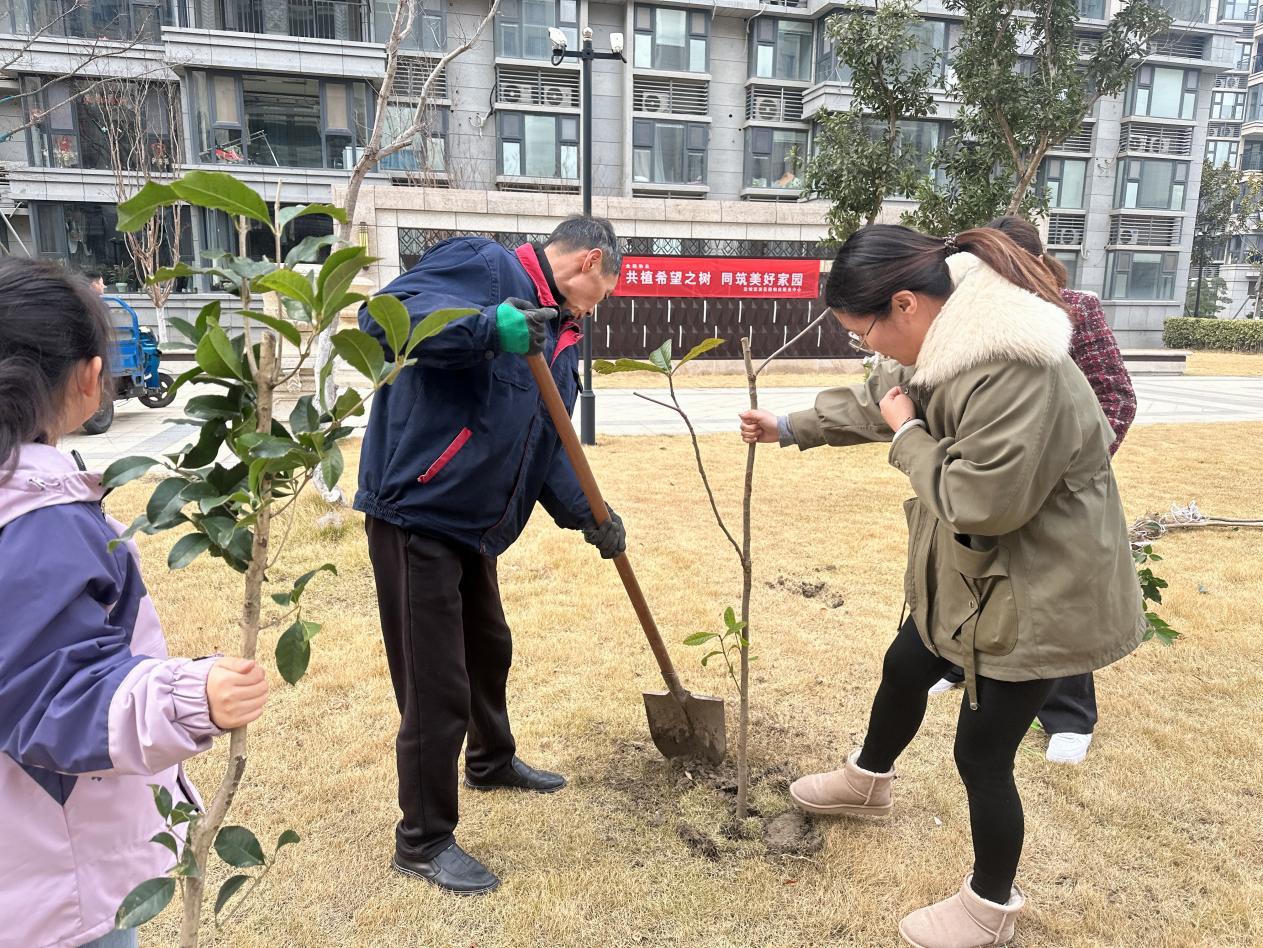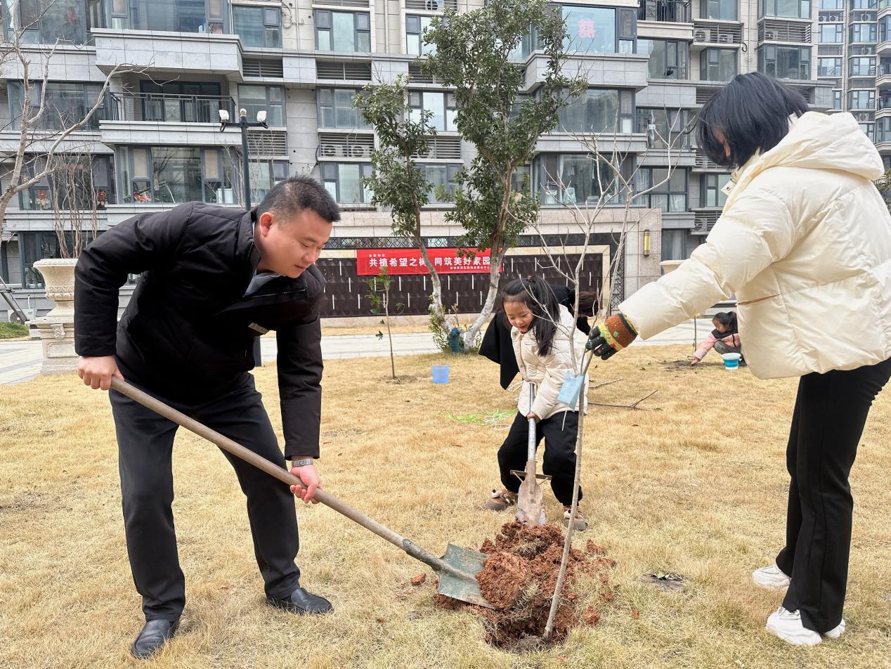 业主们也纷纷投入到植树的热潮中,有的夫妻二人配合默契,丈夫挥动铁锹培土,妻子则在一旁细心地扶正树苗;有的家庭全家总动员,老人们在一旁传授着植树的经验,年轻人和孩子们齐心协力,共同为小树苗营造一个温暖的“家”。现场一片热火朝天的景象,劳动的快乐在每个人心间蔓延。