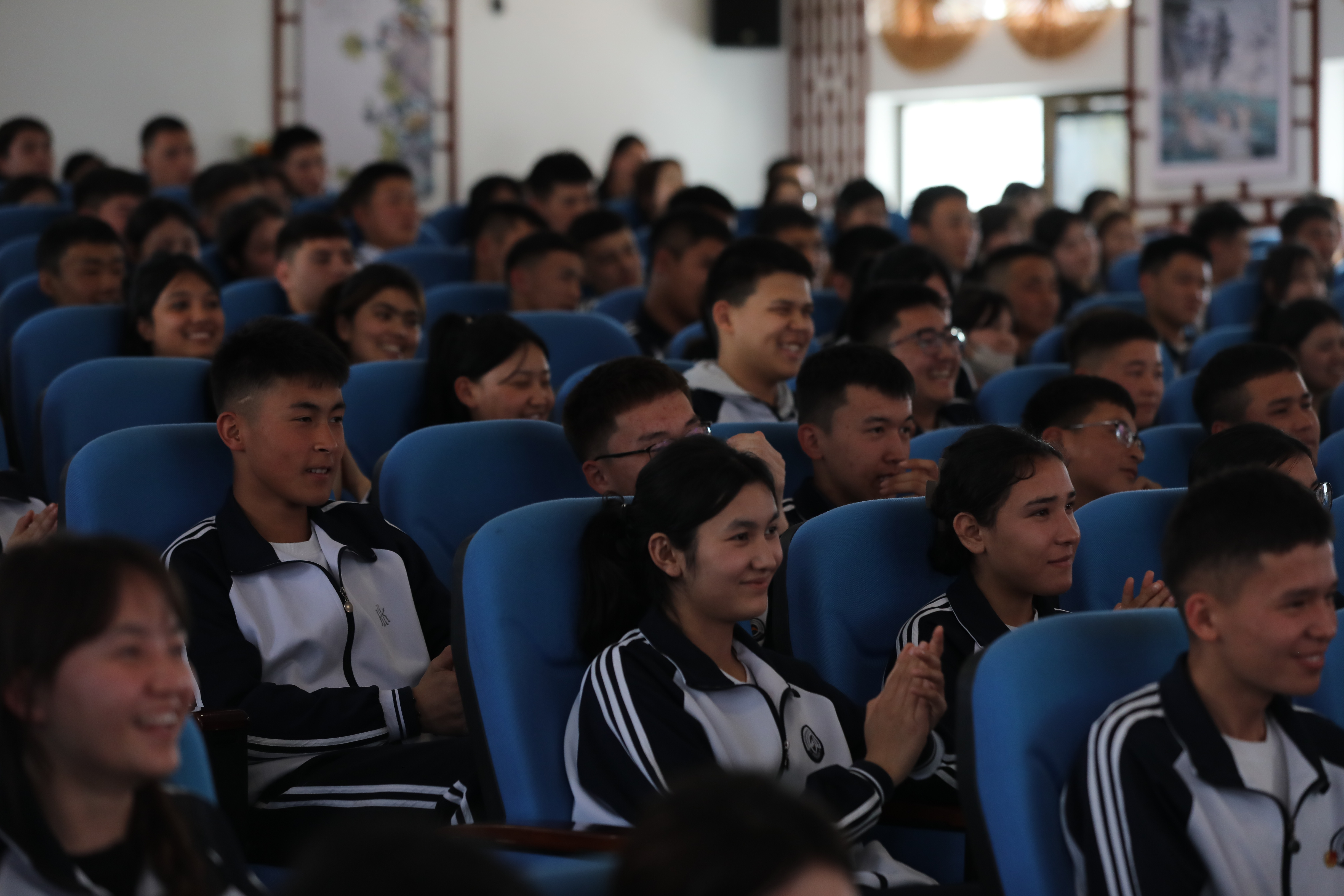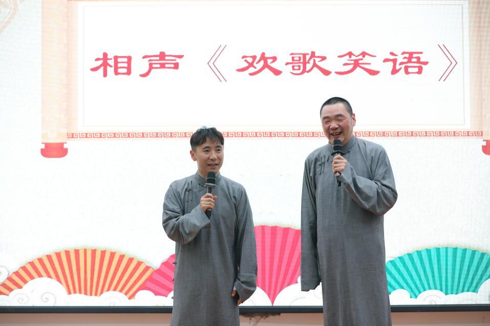在霍尔果斯市职业技术学校内,青年歌唱家晏煊献唱《瘦西湖与那拉提》,相声表演艺术家钱麟、张宇以《欢声笑语》幽默段子点燃现场,互动拉近两地情谊,师生直呼“接地气、有共鸣”。