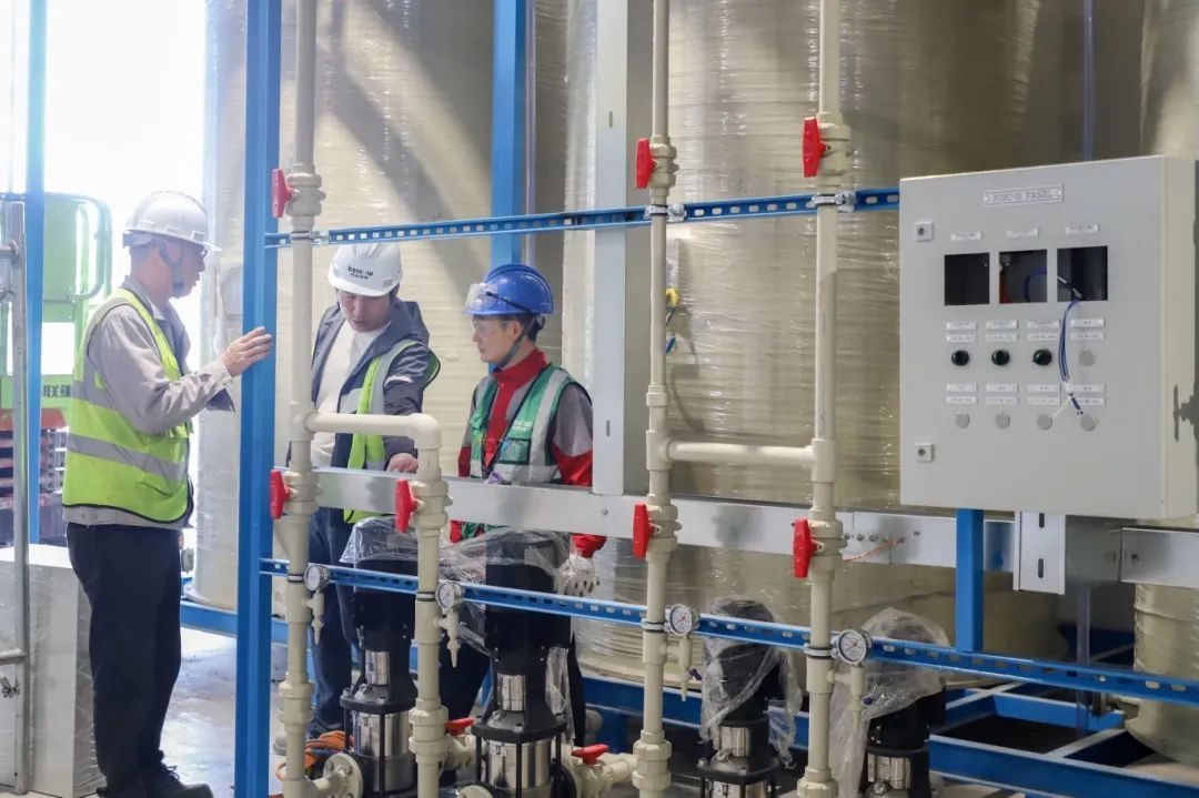 近日,小编走进位于常熟新材料产业园的优美科燃料电池催化剂(常熟)有限公司燃料电池催化剂项目现场看到,一栋栋灰色调的建筑群已拔地而起,齐整地矗立于晴空之下。废水处理站内,施工人员正忙着进行机泵安装和管线排布工作。