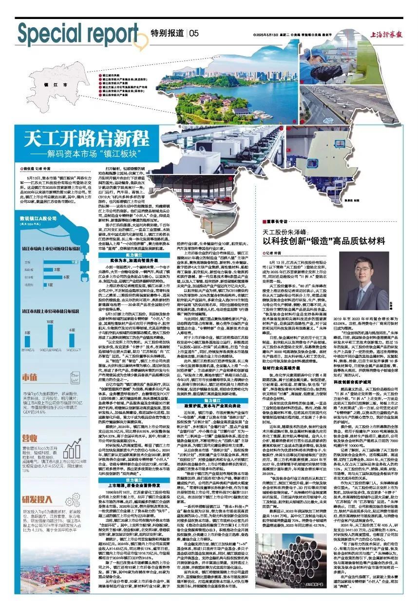 5月13日,资本市场“镇江板块”再添生力军——江苏天工科技股份有限公司登陆北交所。这是镇江市2025年首家新增上市公司,也是2020年以来该市新增的第10家上市公司。至此,镇江上市公司总数达25家,其中,境内上市公司22家,数量居江苏省各市第6位。