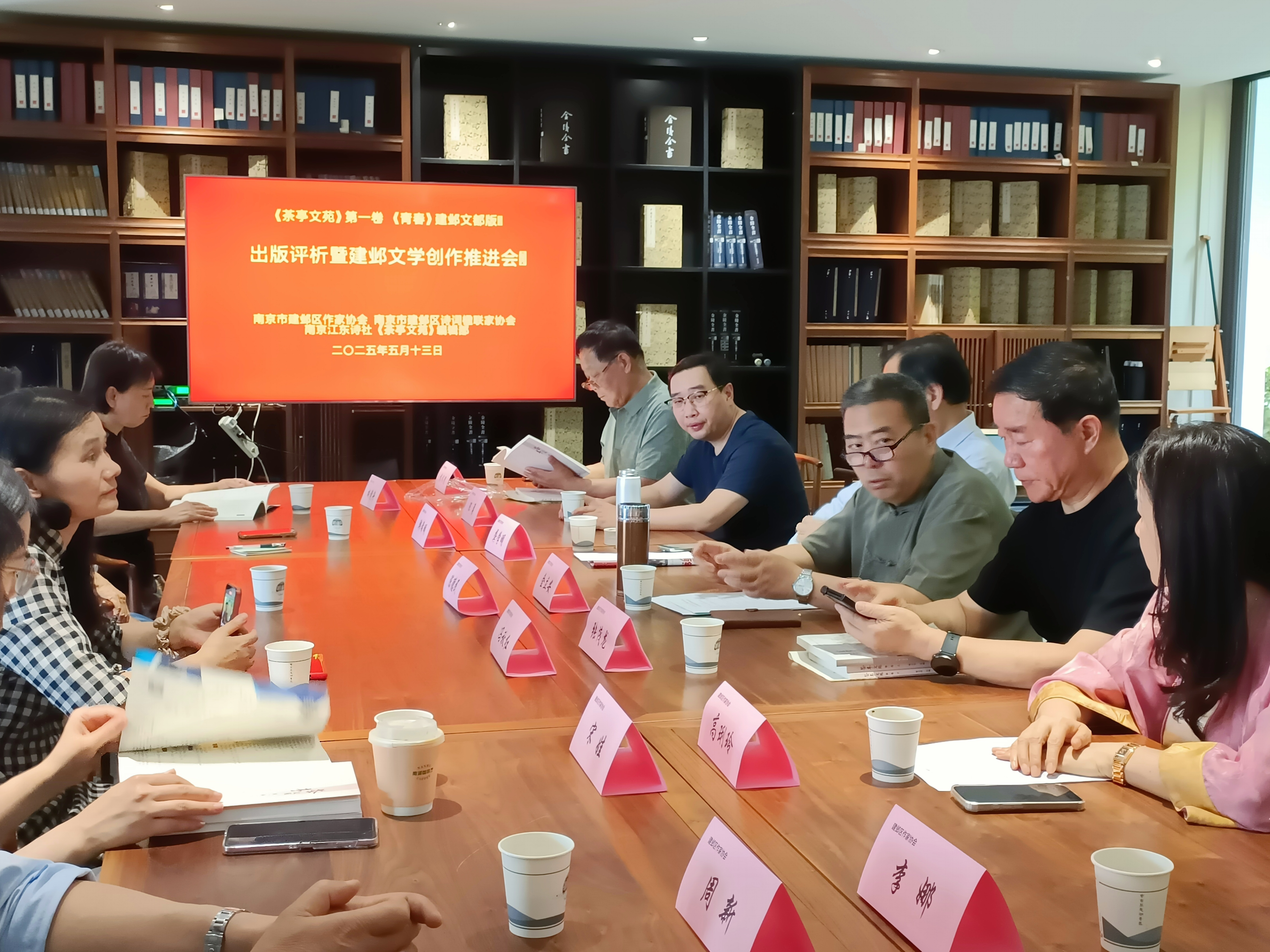 2025年5月13日下午,由南京市建邺区作家协会、诗词楹联家协会、江东诗社及《茶亭文苑》编辑部联合主办的“《茶亭文苑》第一卷、《青春》建邺文都版出版评析暨建邺文学创作推进会”在莫愁书院举行。建邺区文联、文旅局代表,建邺区作协主席张茂龙、建邺区诗词楹联家协会主席龚学明,文学界嘉宾袁裕陵及编创团队等近20人共聚一堂,共话区域文学发展,见证建邺文化新成果。