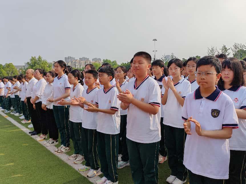 千余名学生在高三(4)班邵子源同学带领下庄严宣誓,立志以不懈努力致敬集团30年辉煌,用优异成绩续写枫叶荣光。初中部李春老师带领全体教师宣誓,承诺坚守教育初心,培育英才。铮铮誓言响彻校园,凝聚着枫叶师生砥砺前行的坚定决心。
