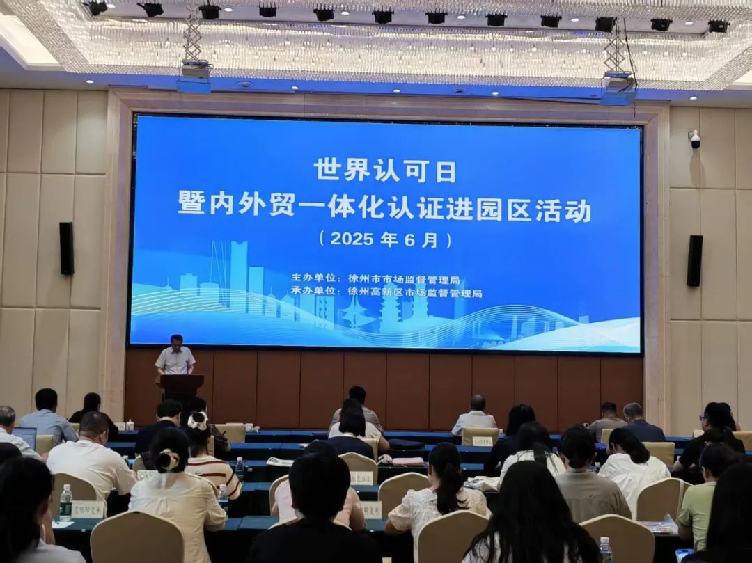 为精准服务企业外贸出口需求,打通内外贸衔接堵点,6月13日,徐州市市场监管局举办“世界认可日暨内外贸一体化认证进园区”活动,为企业送政策、解难题、优服务!