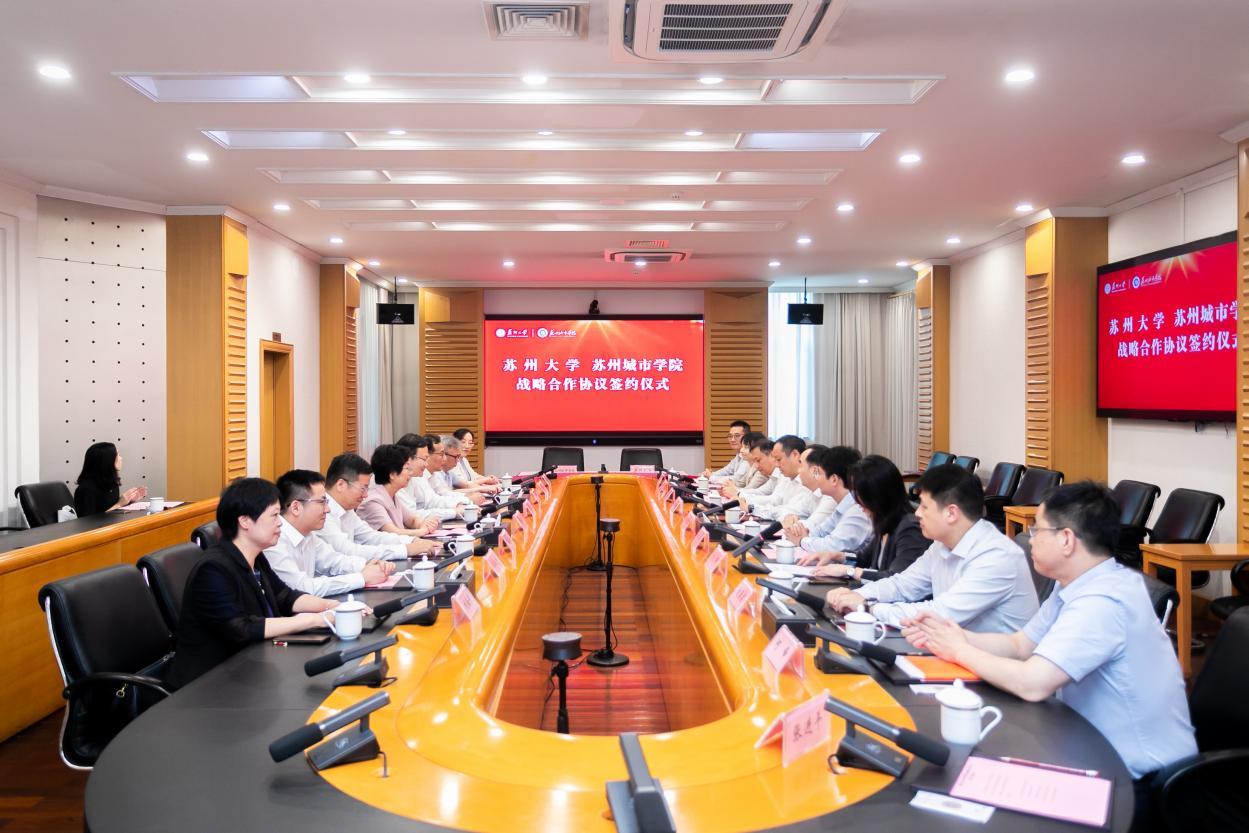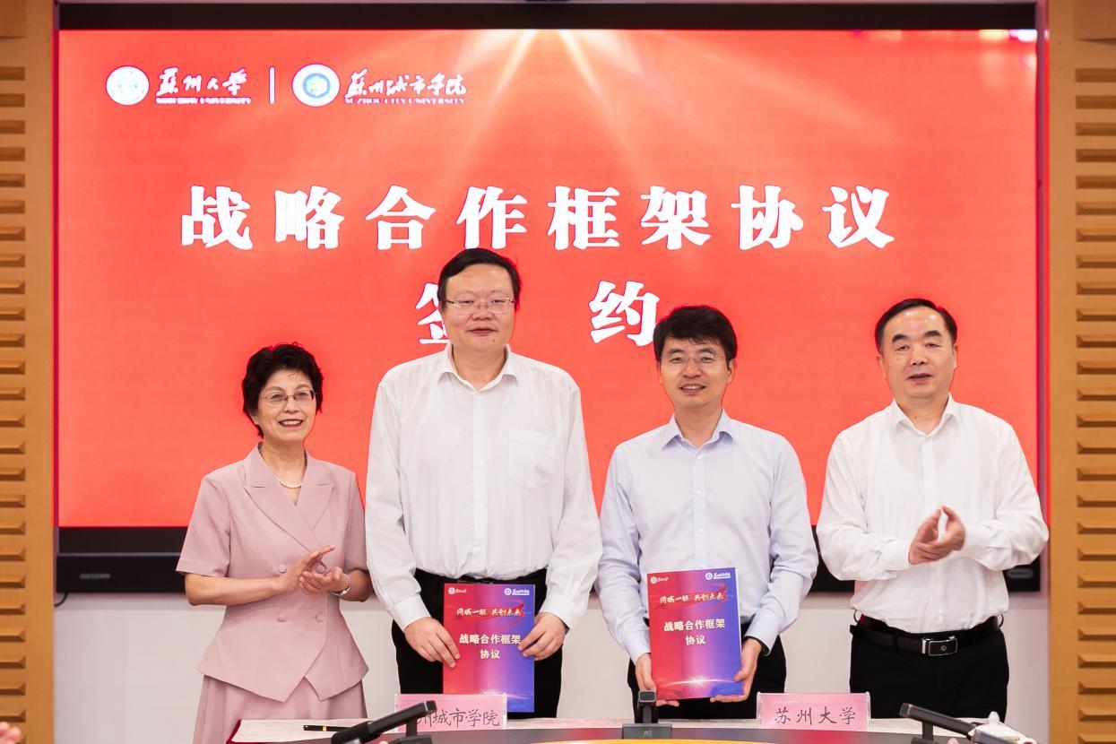 初夏的苏州,草木葱茏。6月23日下午,苏州大学天赐庄校区,苏州大学与苏州城市学院的代表们齐聚一堂,共同签署《战略合作框架协议》《师资队伍建设合作协议》及《联合培养研究生合作协议》,标志着两校正式迈入全方位深度协同的崭新发展阶段,为地方高等教育合作共建树立了全新典范。