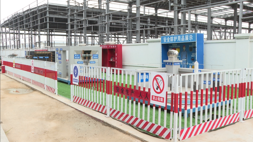 实体防护,夯实安全根基。项目方着力提升现场本质安全水平,安全体验馆通过实操体验强化人员安全意识,现场全面采用搭设高效、稳定性强的盘扣式脚手架,工具式加工棚、防护棚使用型钢螺栓制作,安装便捷、可周转使用。临时用电严格执行TN-S接零保护系统,现场配备除颤仪(AED),为紧急情况提供救援保障。