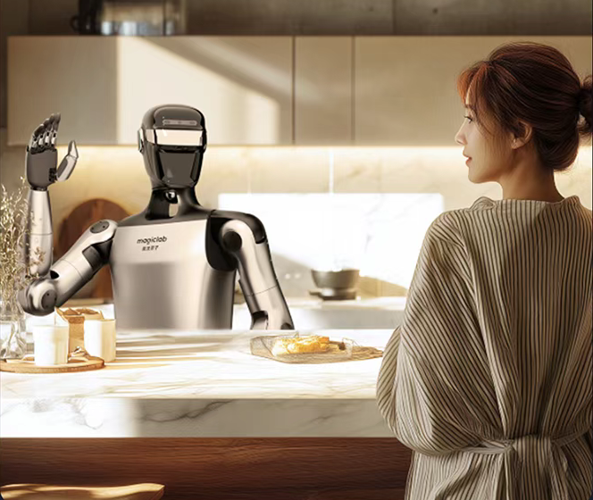 性能不断提升的同时,MagicBot Z1还兼顾着拟人化情感交互能力。其利用丰富的视觉和触觉感知信息,基于多模态交互,构建拟人化的交互系统。当用户与Z1互动时,轻触Z1头部,不仅可以语音交互,还可以生成拟人化动作,如扭头、招手等,为用户提供情绪价值。