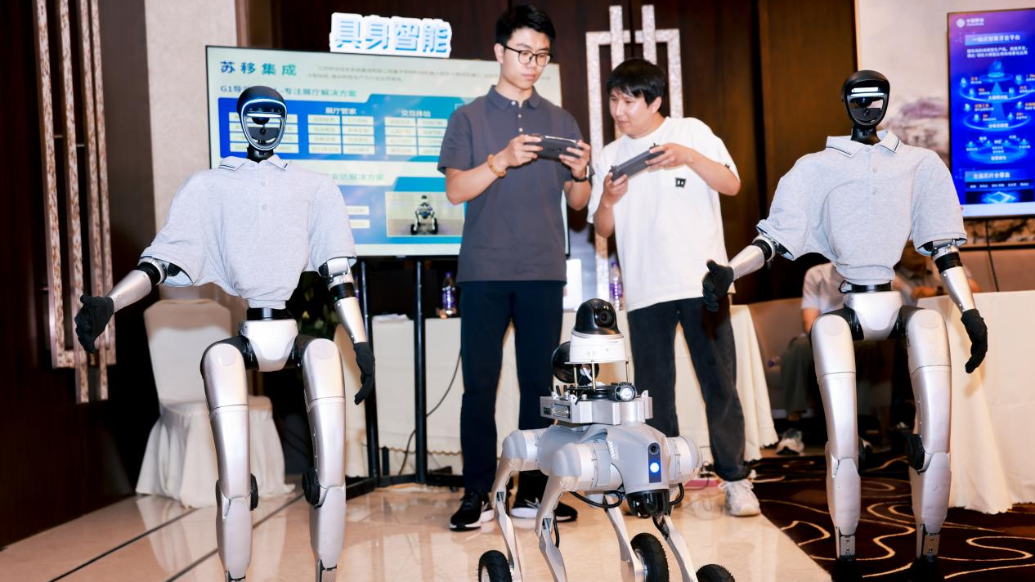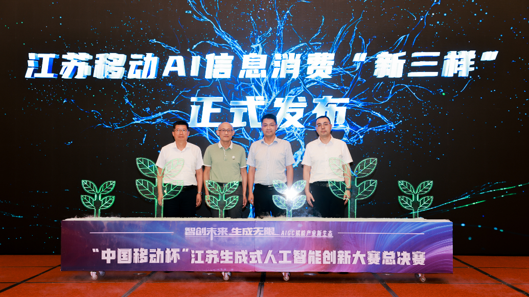 活动中,中国信息通信研究院人工智能研究所平台与工程部主任曹峰分享《生成式人工智能现状与发展趋势》专题报告;省人工智能学会理事长陈松灿、省通信管理局技能鉴定中心主任丁玮、省科协秘书长范银宏、中国移动江苏公司政企客户部副总经理藏昊旻共同发布江苏移动AI信息消费“新三样”。据了解,此次发布的新三样产品包含智能网联车、智能终端、智能机器人,全面覆盖“人、车、家”场景。其中,具身智能机器人包括人形/轮式机器人和机器狗,服务于陪护、教育、接待等五大应用场景。目前相关产品已在13个地市的主厅试点应用。