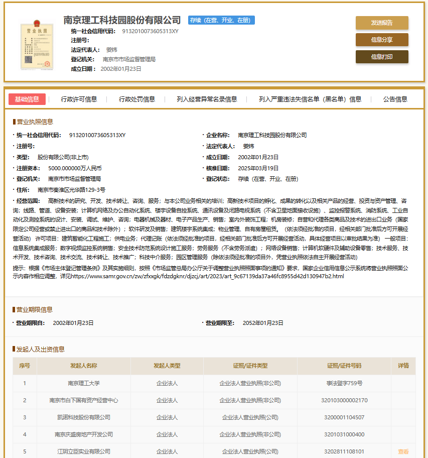 公开信息显示,南京理工科技园股份有限公司成立于2002年01月23日,法定代表人姜炜。