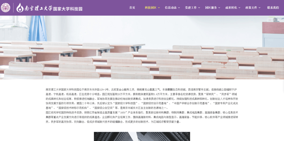 该公司官网显示,南京理工大学国家大学科技园位于南京市光华路129-3号,主要承接名校资源优势,聚焦“军转民”、“民参军”领域的成果转化和创业培育,积极推进校地融合、军地协同发展在推动校地创新资源集成、加速保质进行科技创业孵化、持续加强科技成果转移转化、创新创业人才培养和开放协同发展方面的引领作用。