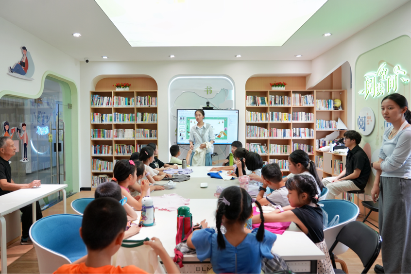 德育课堂上,钟扬教授的“种子精神”、消防英雄逆行的事迹,不再是课本里的文字,而是孩子们讨论时眼里的光——“我也要做像钟扬爷爷一样的人”;智育课上,AI绘本里的“哪吒”跳出屏幕,孩子们举着小手用中英双语描述角色,数字技术让传统文化焕发新活力;体育场上,踢毽子的欢笑声、“两人三足”时紧握的小手、冲过终点时的齐声呐喊,把协作与拼搏刻进汗水里;美育课上,非遗绒花在指尖绽放,敦煌蜡染的蓝白纹路晕染出古韵,孩子们举着作品时的自豪,比蜡染更鲜亮;劳育课“整理小达人”比赛里,从手忙脚乱到叠出方方正正的衣衫,那句“回家我也行”的宣告,藏着劳动赋予的底气。