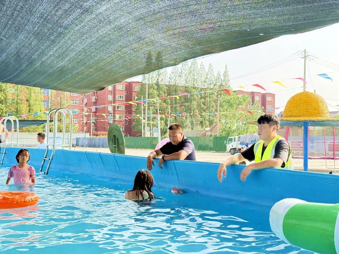 据了解,这处水上乐园由宿羊山村投资建设。为保障安全,村里每天安排村干部和党员轮流担任“安全员”,在泳池边不间断巡逻,防止意外发生;同时,村里还定期邀请游泳教练为孩子们讲解游泳技巧和防溺水应急知识,有效防范溺水事故发生。