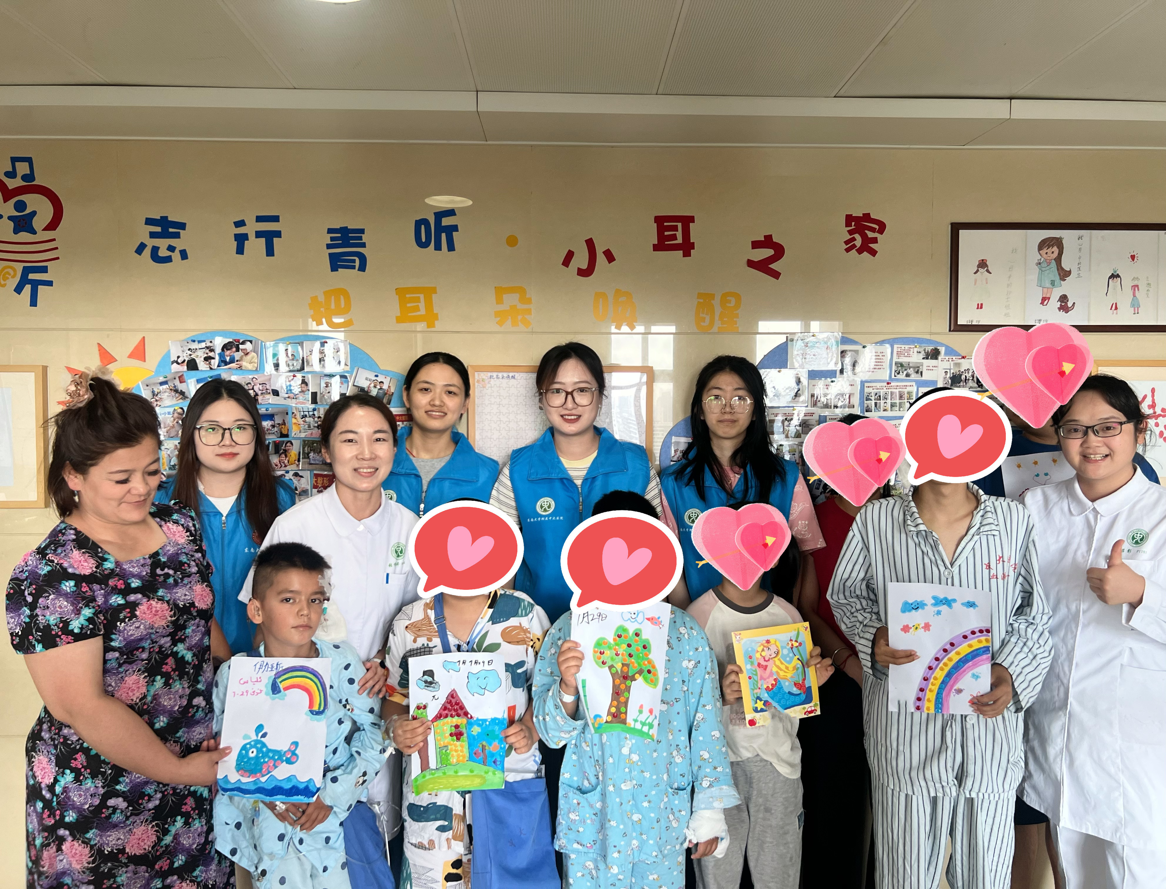 活动最后,张倩婷护士长笑着牵起孩子们的手:“我们去看看‘小耳之家’的故事吧!”大家跟着她走出示教室,墙上挂满了往届患儿的作品。护士长轻声讲述着“小耳之家”的起源,从2012年起,当时的烧伤整形科护士长鲁玲自发带领全体烧整医护,在每年寒暑假先天性小耳症患儿住院治疗高峰时段开展科学普及、心理疗愈、弘扬风尚等志愿服务。