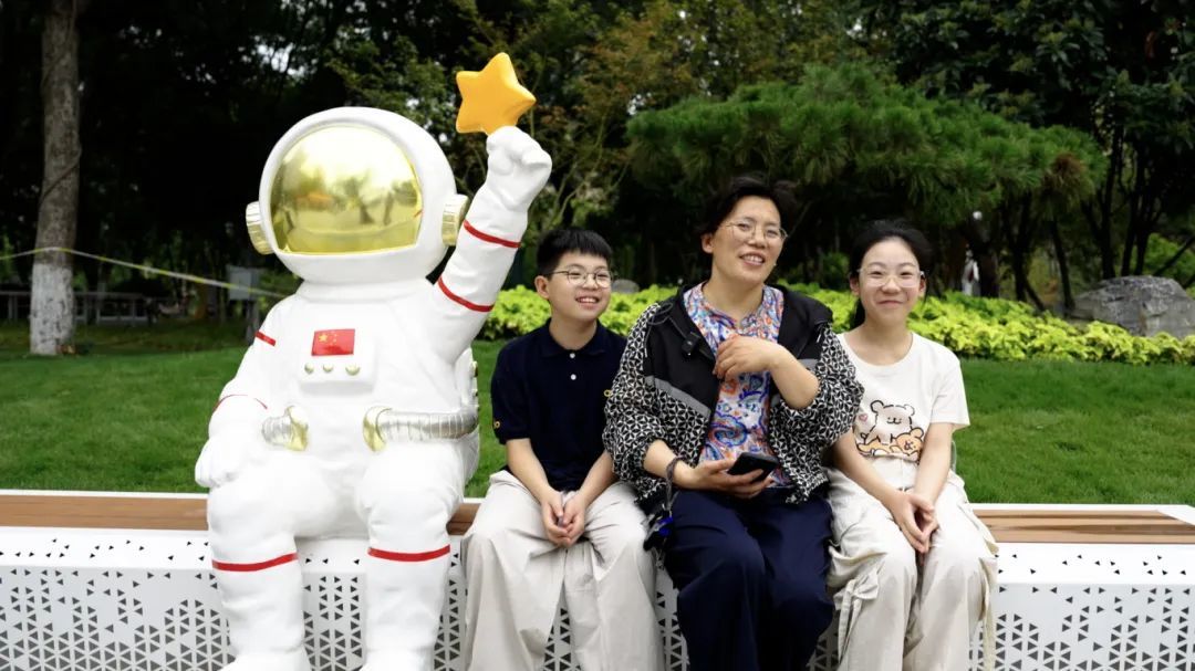 此外,揽月园内的太阳广场、月亮广场地面喷绘太阳大气层与月相变化相关知识,搭配园内1:1仿制的载人飞船返回舱、航天服模型等打卡点,让天文知识融入休闲空间,在潜移默化中实现寓教于乐。