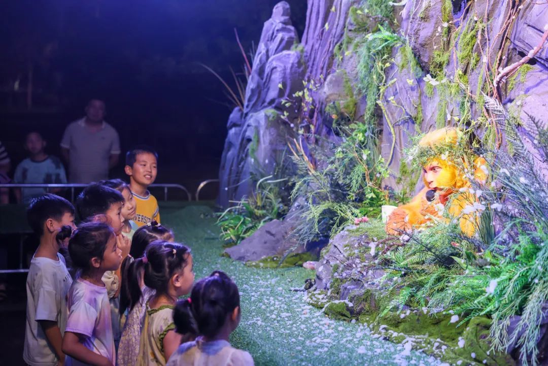 活动当晚的文博园广场堪称“沉浸式剧场”,绚丽灯光勾勒出美轮美奂的舞台,云雾特效更添几分“仙气”。演员们化身唐僧师徒,用生动的表演再现取经路上的趣闻轶事,台下小朋友们时而欢呼、时而模仿孙悟空的经典动作,台上台下互动频频。不少家长特意带孩子前来,在欢声笑语中为孩子的暑假留下独特记忆 ,当“孙悟空”走下舞台与孩子们击掌,当“猪八戒”用憨态可掬的模样逗笑全场,传统文化的魅力在夏夜中悄然绽放。