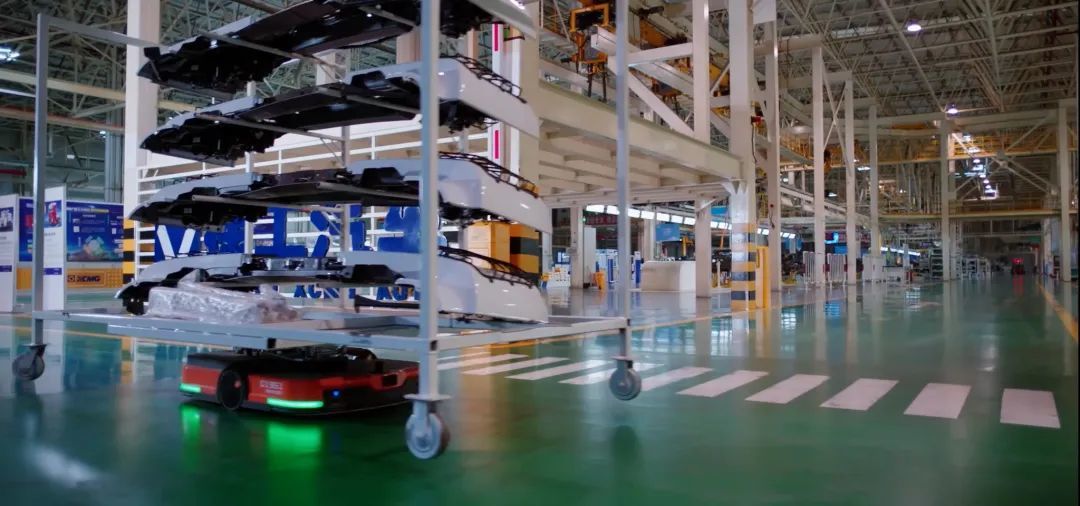 总装线上,46工位U型滑板内饰线如巨型传送带般缓缓移动。AGV小车通过定位技术精准停靠在轮胎装配工位,机械手“咔哒”一声将轮胎装上轮毂,全程无需人工干预。“过去叉车送料需要3人配合,现在AGV自己认路、避障、卸货,效率提升50%。”现场工人说。