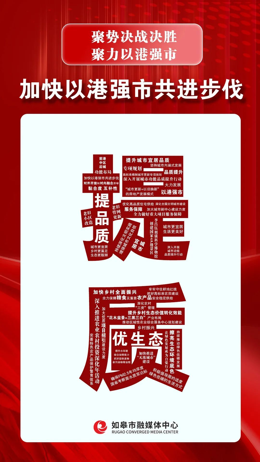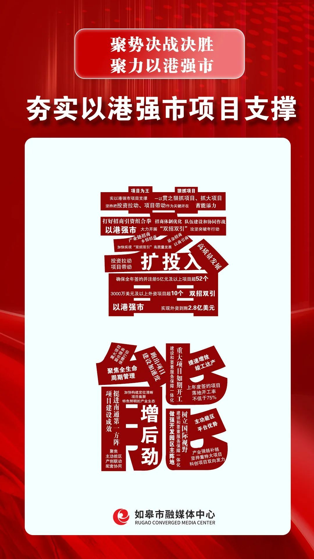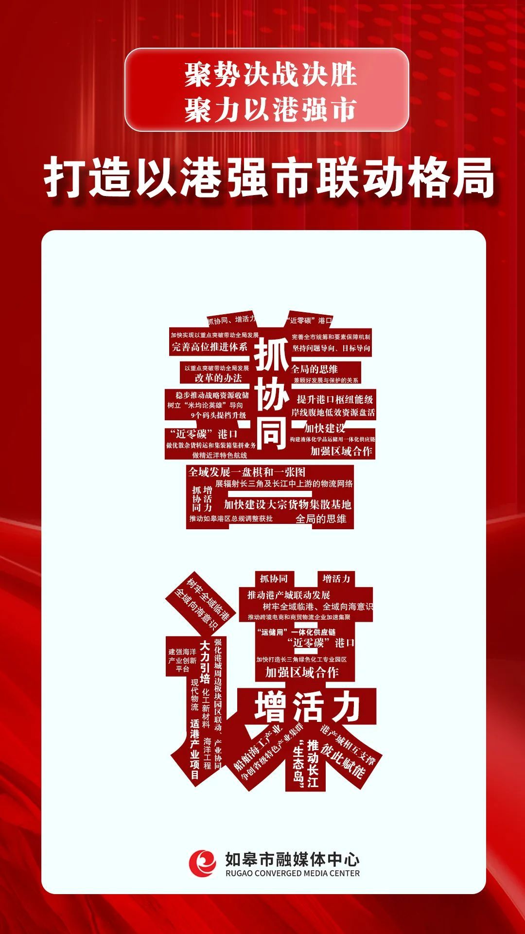 全面推进“以港强市”战略实施方案,高标准完成港产城融合发展规划编制,推动如皋港区总规调整获批,形成全域发展一盘棋和一张图。