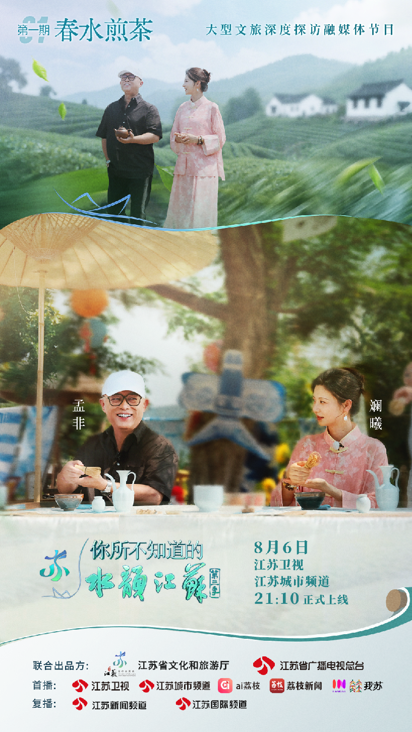 由江苏省文化和旅游厅、江苏省广播电视总台联合打造的大型文旅深度探访融媒体节目《你所不知道的水韵江苏》第三季,8月6日起在江苏卫视和江苏城市频道晚黄时段播出,ai荔枝、荔枝新闻、inJiangsu我苏等新媒体平台同步上线。主持人孟非、演员斓曦身份焕新,担任主理人入驻“非遗客栈”,与“00”后们一起体验、感受江苏非遗魅力。