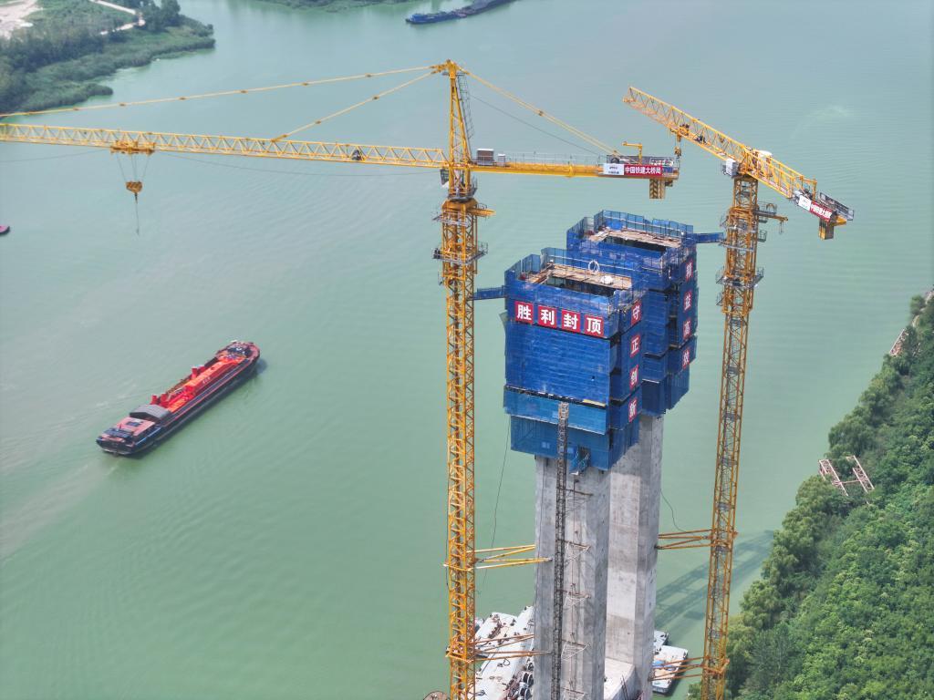 当日,由中国铁建大桥局承建的沪渝蓉高铁跨京杭运河斜拉桥主塔顺利封顶。至此,大桥核心支撑结构施工圆满收官,项目全面转入钢梁及斜拉索安装新阶段。该桥位于江苏扬州境内,是沪渝蓉高铁全线关键控制性工程,桥长564.3米,主跨300米。