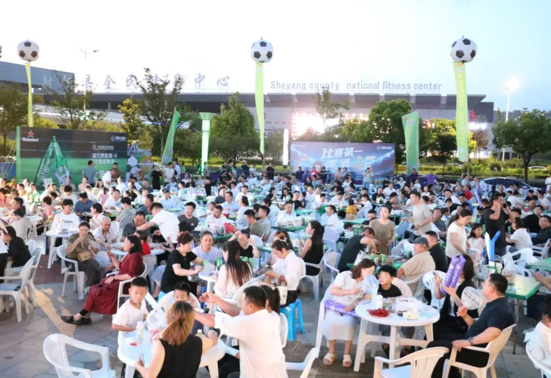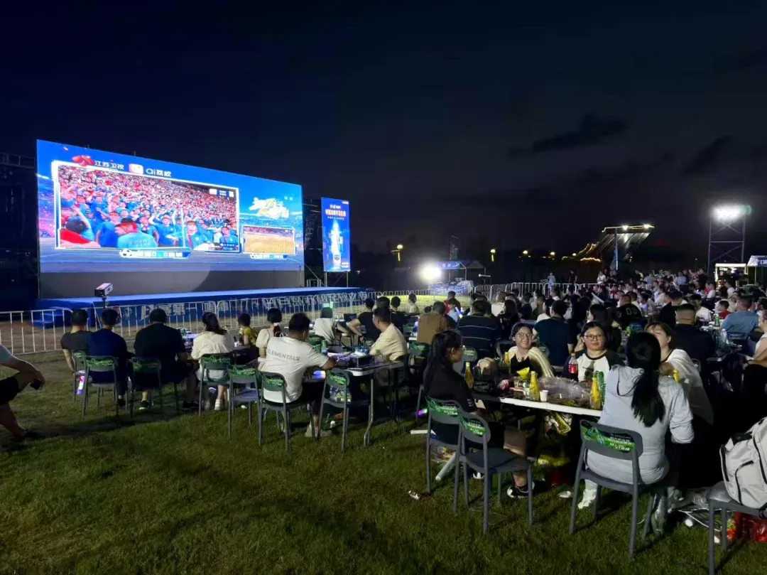 日月岛康养旅游度假区的月光草坪上,超大屏幕清晰呈现着赛场每一个细节。“从停车指引到秩序维护,每个环节都有人值守,我们用细致服务为游客营造便利舒适的观赛环境。”度假区副总经理丁德乾说,现场采用科学分区设计,打造球迷观赛区、美食集市区、打卡应援区、互动体验区四大功能板块,让每位游客都能沉浸式感受足球盛宴的多元魅力。市民王海一边观看球赛一边品尝着烤串、小龙虾等美食说:“现场氛围比在家看爽多了,这才是夏天该有的样子!”