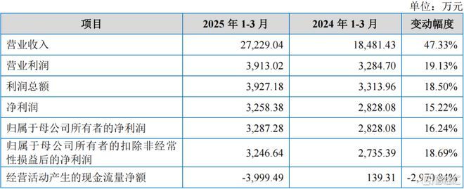 2025年1-3月,公司实现营业收入2.72万元,较上年同期增长47.33%;归母净利润3287.28万元,较上年同期增长16.24%。公司业绩有较大幅度上升,主要原因为2025年一季度全球光伏市场需求保持增长态势,公司产品销量持续增长。