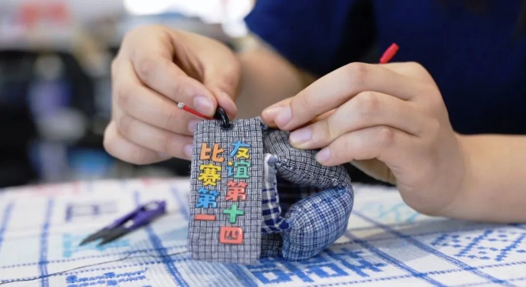 今年4月,启东虎头鞋入选南通市第六批市级非物质文化遗产名录。6月,江苏城市足球联赛激战正酣,章镇布艺以足球为灵感,将非遗土布与“苏超”元素相结合,设计生产了精美的足球布艺挂饰。
