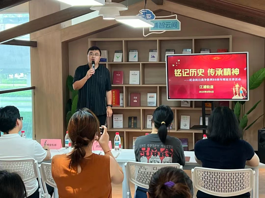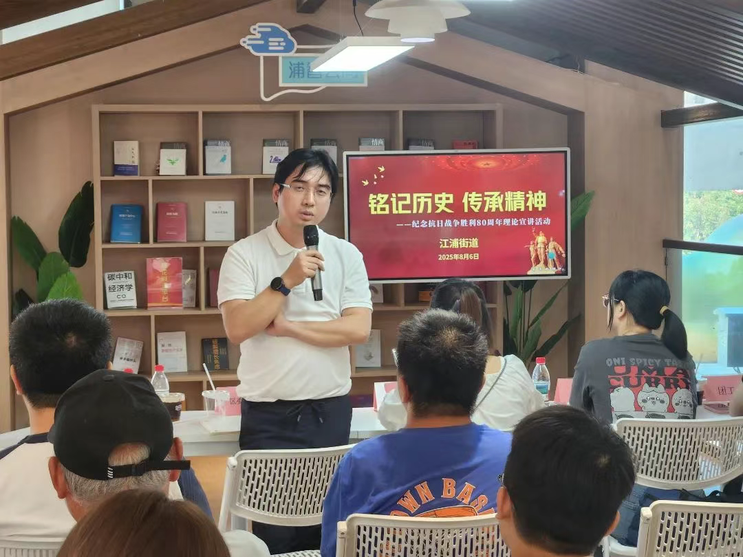 为回顾党的光辉历程,铭记抗战历史,传承伟大精神,8月6日下午南京江浦街道开展“铭记历史 传承精神”——纪念抗日战争胜利80周年理论宣讲活动。